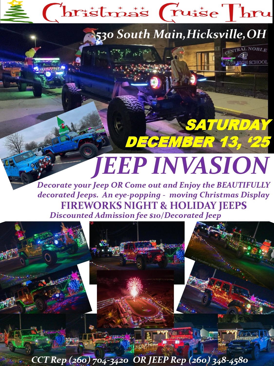 Parking Lot opens at 3pm – COME EARLY CCT Entry queue closes from 5:45-6:40 – Entry Required Once we get the all clear from our fire dept we will send the cars into the light show. Safety is our #1 concern. PLAN AHEAD the town gets busy. Hopefully, we will not have road construction, but if we do, please plan accordingly. COME EARLY!! Suggested Routes: From East: Jericho Road turn right on Clemmer Road; From West: SR 2 Turn right on Casebere Miller Road left on Jericho Road left on Clemmer Road; (Clemmer Road turns into Main Street, where our entrance is located. COME VERY EARLY!